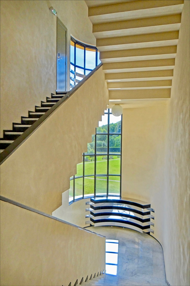“Binnen en buiten regeert de horizontale lijn, waardoor alles optisch wordt vergroot. Elk vertrek is opgebouwd uit een andere exotische hout- of marmersoort. De wanden zijn fris en mintgroen geschilderd, daglicht valt overal riant naar binnen. Verwarming, luchtcirculatie, indirecte verlichting, telefoon, draadloze intercom, centrale radio, goederen- en personenliften, ingebouwde klokken, alles was er. Toen al,” schreef weekblad Elsevier bewonderend in 2015.